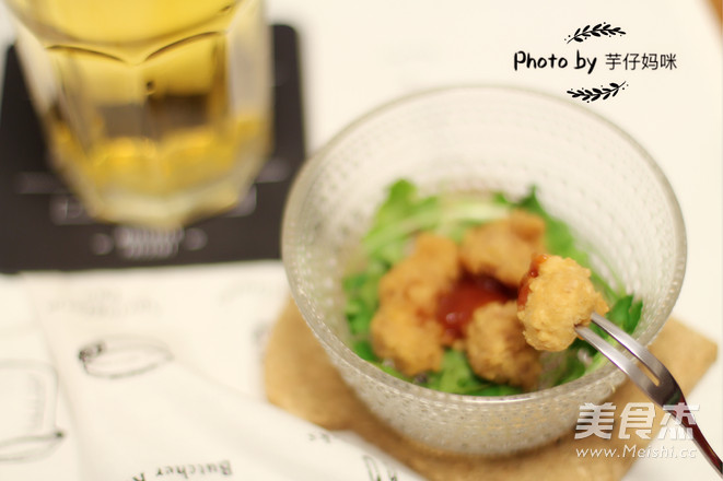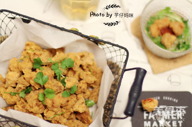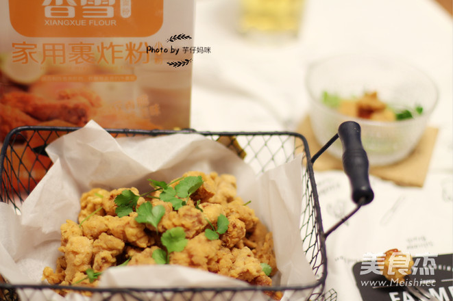 如果家里没有裹炸粉,也可以用淀粉和面包糠来代替。淀粉加水搅拌成面糊,鸡块放面糊里浸一浸,然后粘上面包糠来炸。 家里有空气炸锅的可以用空气炸锅,也可以用烤箱烤。方法其实还是有好几种。