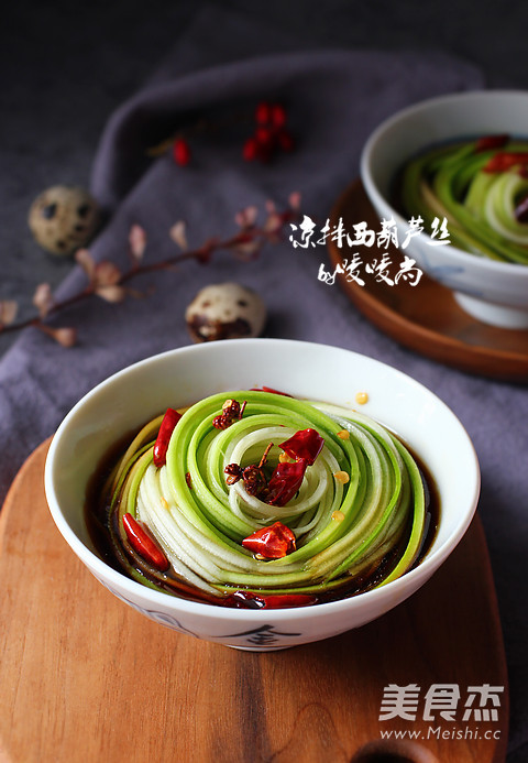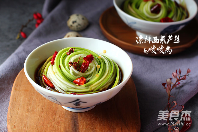 曾经,我的一个朋友和我说,她做饭时不经意的拿了一块刚切好的茄子放嘴里,然后她老公就跟见了怪物一般大叫:“你竟然生吃茄子?”一脸的不可思议。我第一次看到凉拌西葫芦这道菜时也是同样的反应,想到朋友的那个梗便欣然接受了。讲真的,温润如玉的西葫芦丝配上红油汁看上去真的特别能勾起人的食欲,尝一口,西葫芦丝清甜脆爽,酱汁咸鲜为主,但同时兼具一丝的酸甜,还有干辣椒被热油浇过后特有的焦香气,味觉层次特别丰富。当下,我便决定我要回家山寨之!