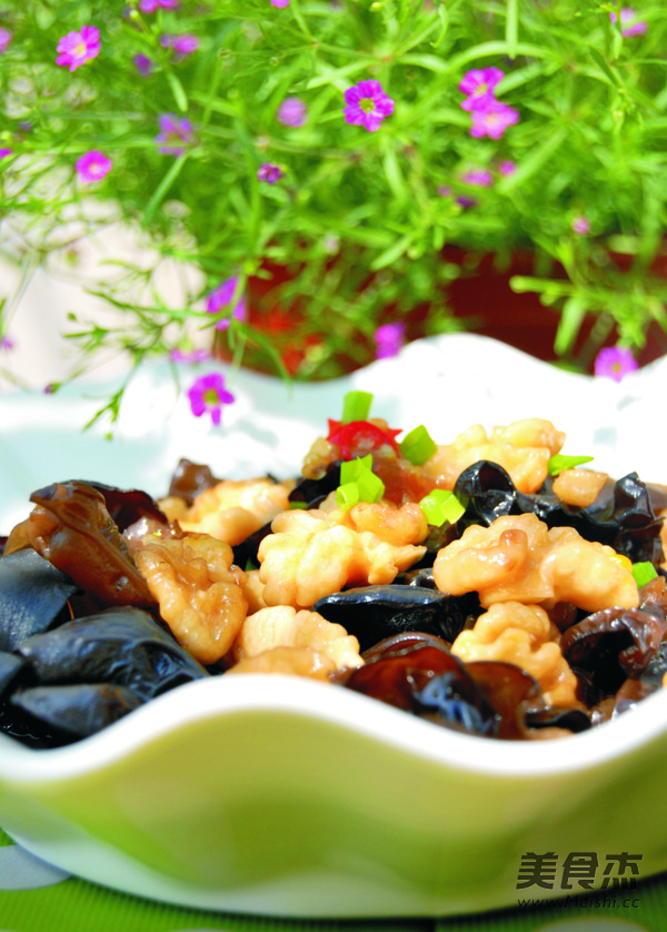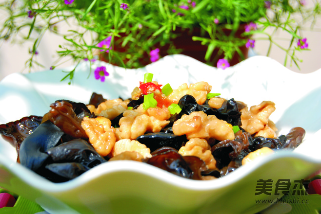 被营养学家盛赞黑木耳为“素中之荤”,其营养价值可与动物性食物相媲美。常吃木耳能养血驻颜,令人肌肤红润,容光焕发,并可防治缺铁性贫血;而核桃能补大脑。两者合一,腴美可口。很适合节后调节肠胃~