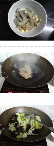 花菜炒虾肉的材料:花菜200g,虾仁100g,油,盐,蚝油,葱,姜,黑木耳,蒜花菜炒虾肉的做法:1. 把花菜摘成小段,在开水中焯一下盛出,虾仁用料酒、姜蒜沫、盐腌一下美食网2. 坐锅倒油下入虾仁煸炒虾仁后放入黑木耳、花菜煸炒后放盐、蚝油、最后撒上葱花即可美食网