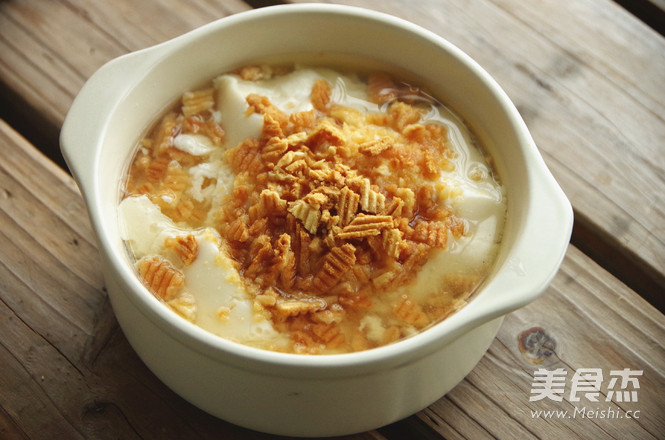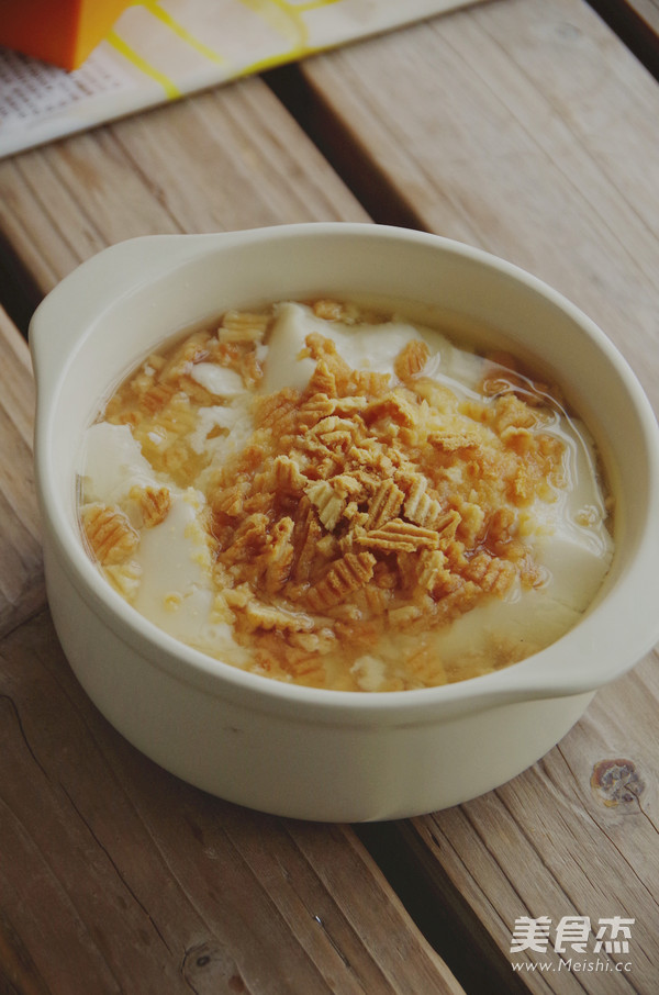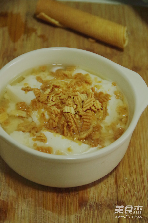 在四川,平时几乎吃的都是咸味豆腐脑,加油辣椒酥黄豆的那种。今天尝试一下甜味的,放白糖或蜂蜜,想着上面应该再铺点“撒子”一样酥脆的东西就更好了,于是就地取材用蛋卷酥代替,一样的酥脆,配上香甜软滑的豆腐脑,真是别有一番风味啊。