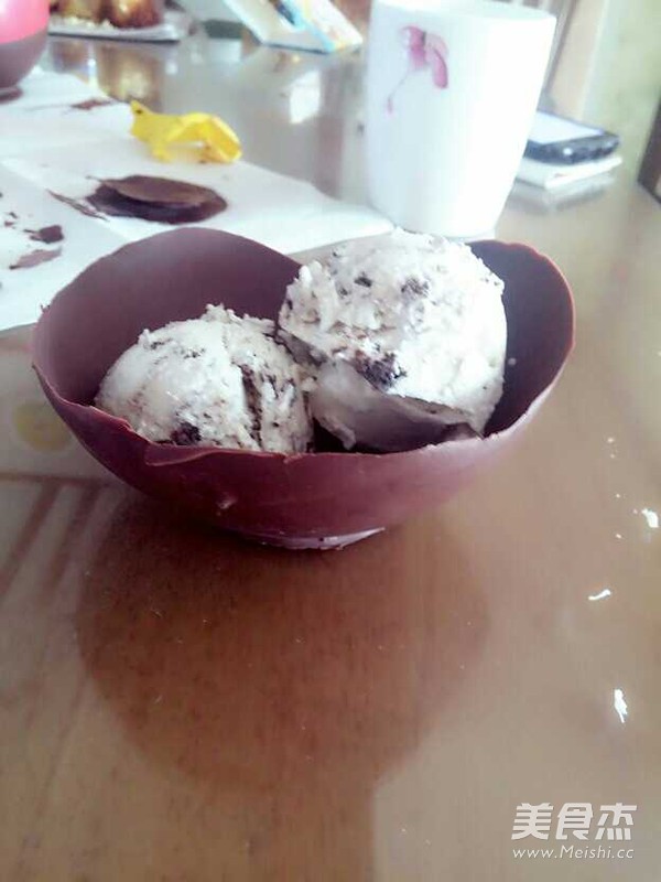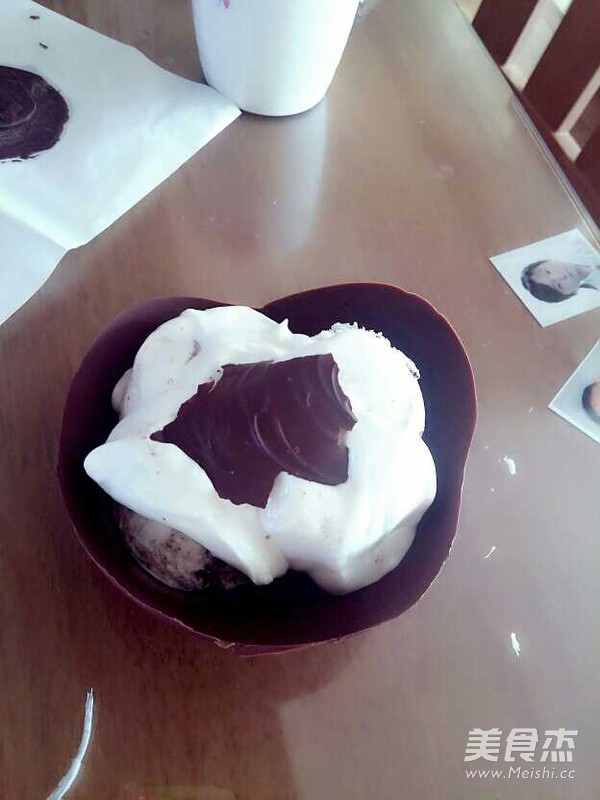 4.把浸过巧克力的气球体放在刚才做好的碗底上自然凉干