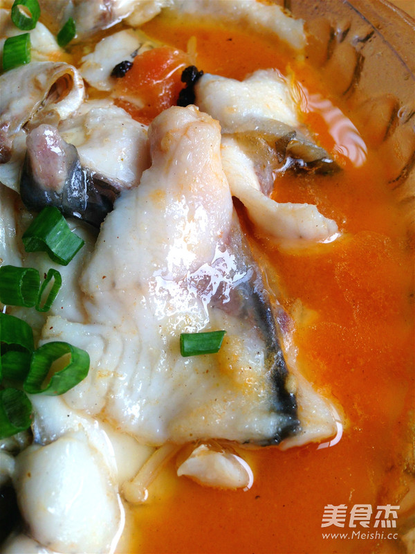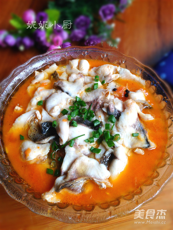 18.大火,鱼片分次下入汤里,加入适量料酒去腥,大火烧开鱼片变白即可