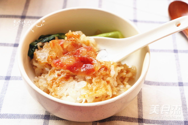 16.将调好的调味汁淋在米饭上,拌匀即可食用