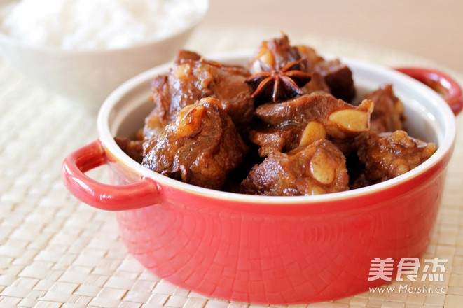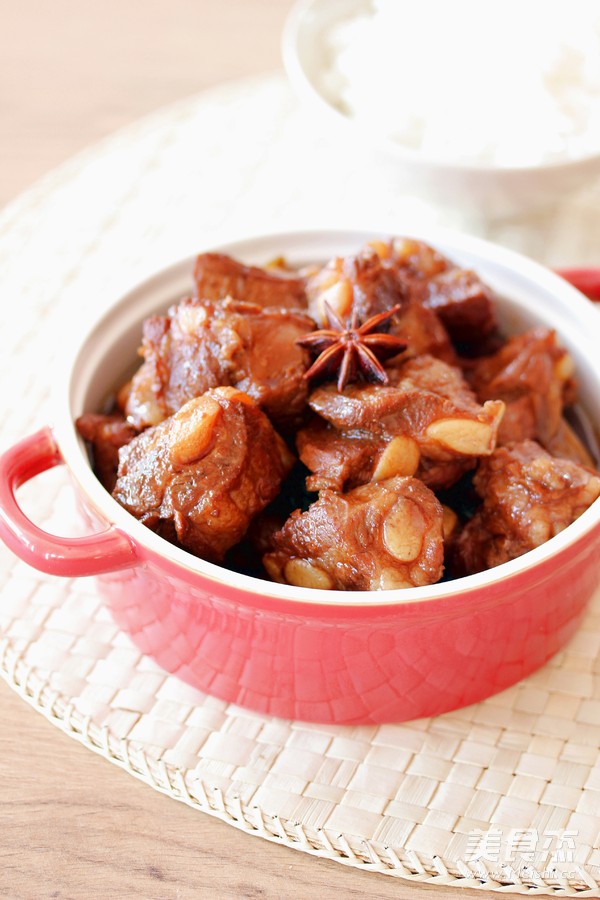 排骨750克 酱油4~5匙 糖2大匙 葱2支 醋2大匙 姜5片 桂皮1支 八角1个