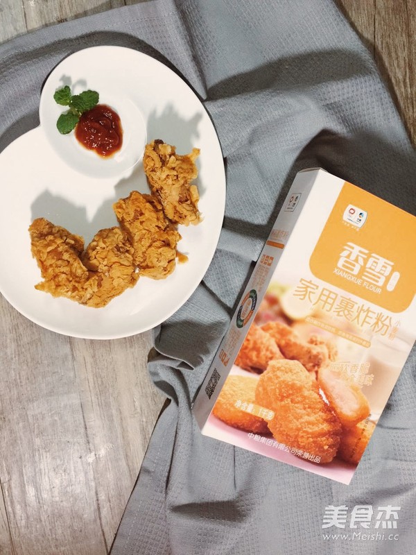 3.再准备一个大一点盘子,倒入香雪裹炸粉备用。