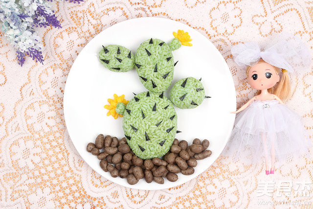 11.依次摆上其他的包馅饭团,仙人掌的轮廓定位就算是做好了。