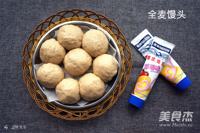 虽然样子不好看,但是沾点炼乳吃也不错的,只是表皮不光滑(可能跟我用的面粉很大关系,这全麦面粉好粗糙的),馒头还是松软的