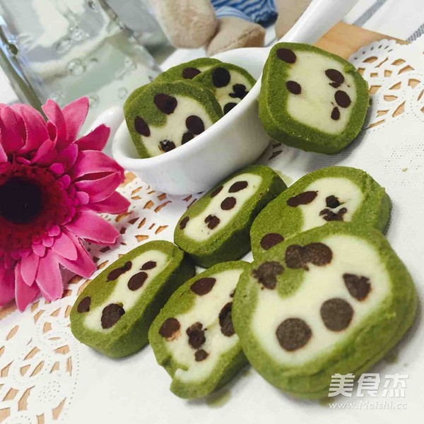 做这道熊猫饼干,可可粉和的面团,切忌可可粉不能太多,否则可可粉面团会发硬,就不容易搓成长条了。饼干一定要冷冻够时间,不然切的时候会散。