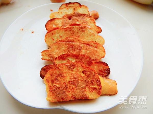 最近感冒,已经好久没认真给娃娃做饭了,今早刚好有点前时间烤的面包准备来做个好吃的早餐给娃娃 主料 面包2块 鸡蛋3个 辅料 盐5克 油10克 鸡蛋 面包片的做法 1.之做的面包两个 2.鸡蛋 三个 3.面包切片 4.鸡蛋 中入2克盐打散 5.电饼铛加油预热 6.把切好的面包片放鸡蛋 液里裹上鸡蛋 液 7.然后在电饼铛上 8.一面煎金黄翻 煎然后在撒上盐 9.煎至两面金黄 10.这是煎好的 烹饪技巧 煎的时候一定要多注意,这容易熟的
