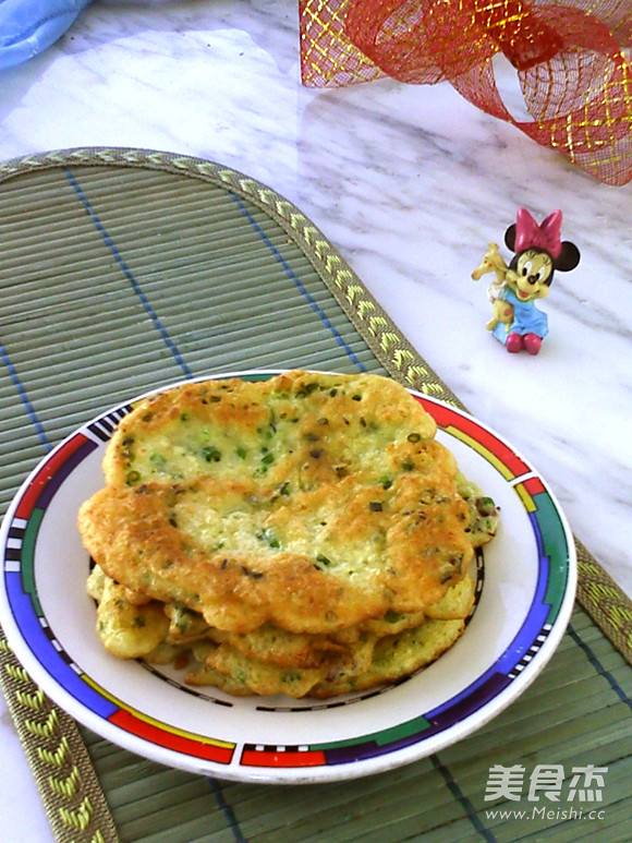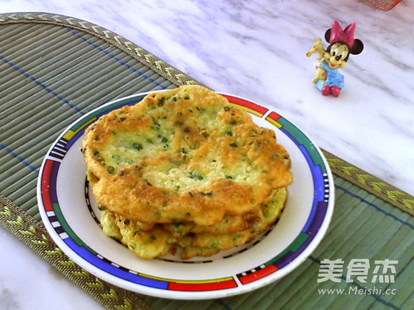 折腾鸡蛋豆腐饼剩下的一点点豆腐,用来做什么好像都嫌少,索性用它来做个蛋糊饼——把豆腐碾碎了加到鸡蛋面粉里去。老同志比较喜欢葱香味儿,加了多多的葱。尽量地把豆腐碾得碎碎的,免得被人看出端倪来。面糊不要太干,成能够流淌的糊状,吃起来口感会比较松软。