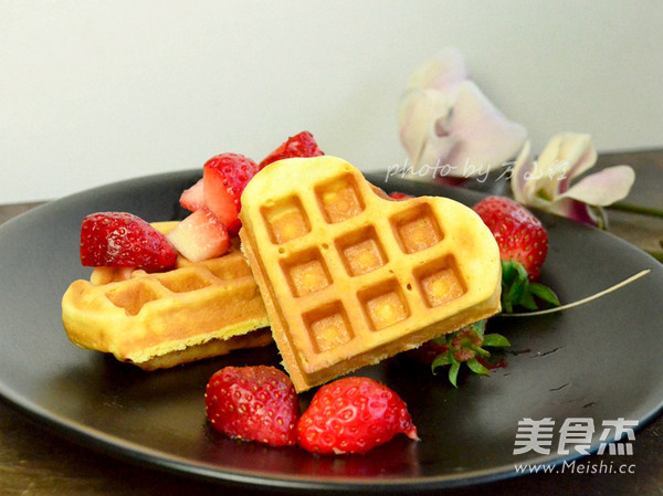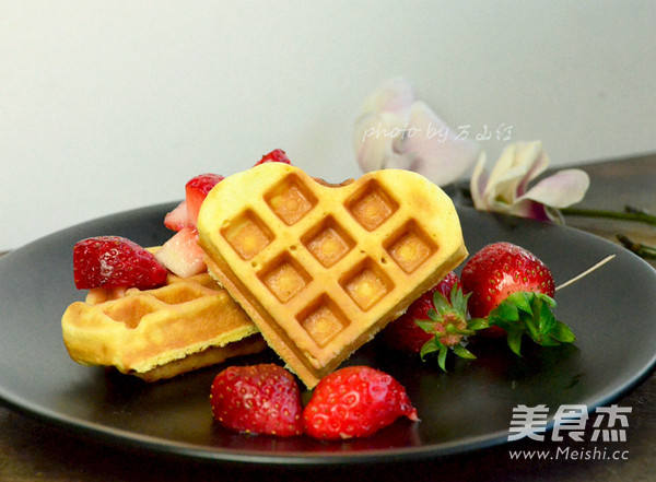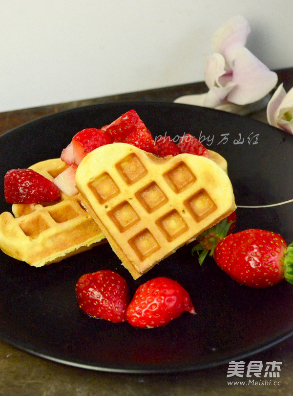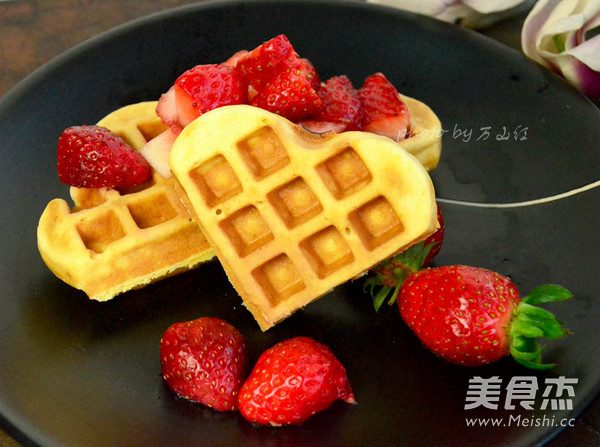 17.烤好的华夫饼,可以搭配水果吃,还可以搭配奶油,酸奶等等。我今天第一次做,就简单搭配了点草莓。