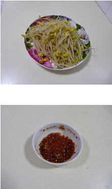韩式凉拌黄豆芽的材料:黄豆芽,韩式泡菜辣酱、白砂糖、盐、味精 美食网 韩式凉拌黄豆芽的做法: 1.黄豆芽用清水洗干净,炒锅加水烧开,关火,然后把黄豆芽倒入炒锅中,翻拌均匀,是黄豆芽断生即可。黄豆芽林干水分。 2.把自制韩式泡菜辣酱、白砂糖、盐、味精放入碗中,搅拌均匀成调味汁,浇在黄豆芽上,调拌均匀就可以开吃了。