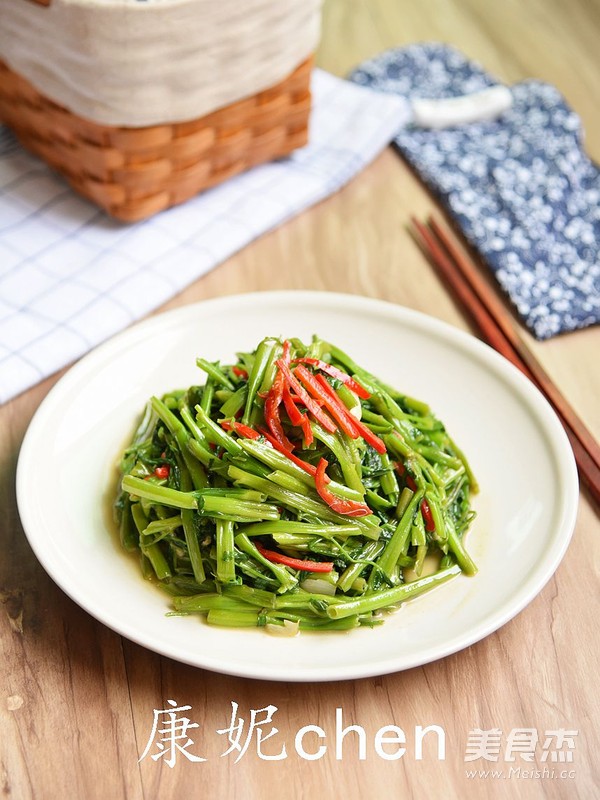 椒丝腐乳通菜是一款经典的粤菜,在广东无论在高档的酒家还是小饭店在通菜上市后必定能点到。以前我炒通菜会有很多水分,卖相和口感都不好,之后看了一些介绍,要通菜保持爽脆的口感和青绿的色泽,秘诀就是大火快炒。而腐乳爆炒后再加入到通菜中,非常美味。