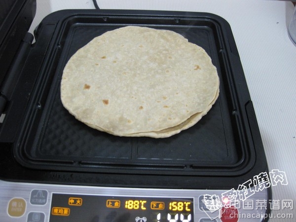 11.时间到了以后将饼取出从边上一分就变为两张了,一张张摞起来放在一个容器内盖个湿布,会使饼保温还能更软