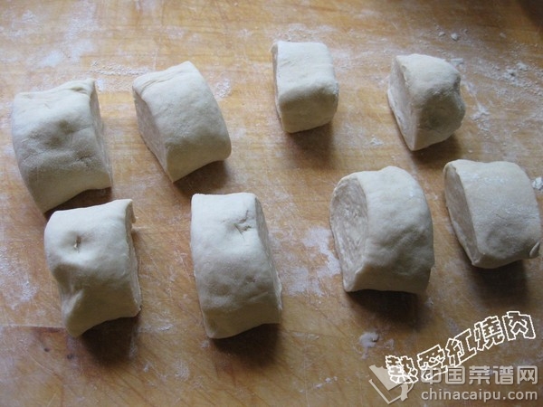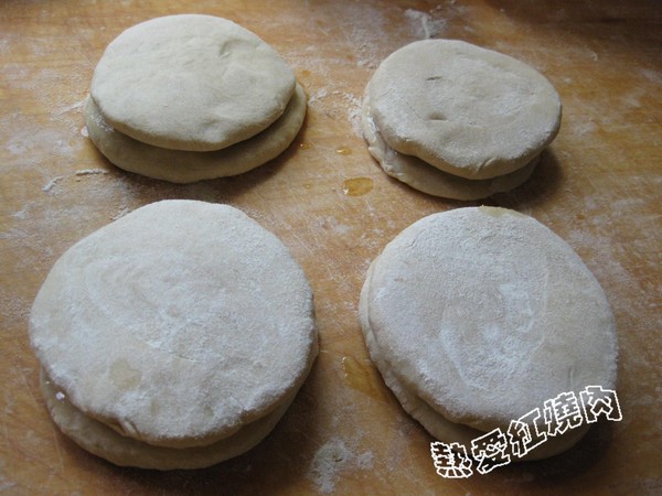 5.再将另一半按扁的剂子摞在抹了油的剂子上