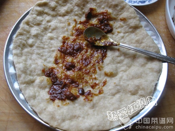 12.吃的时候先抹上黄豆酱或是甜面酱