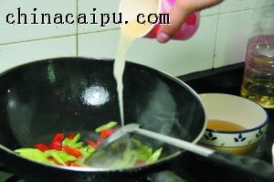 7 淋入生粉水勾芡,即可出锅。