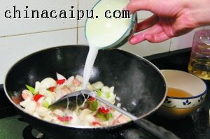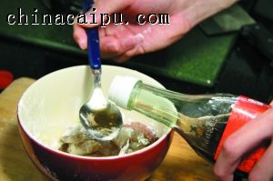 调料:油(3汤匙)、盐(1/5汤匙)、鸡粉(1/3汤匙)、生粉水(1/4杯)