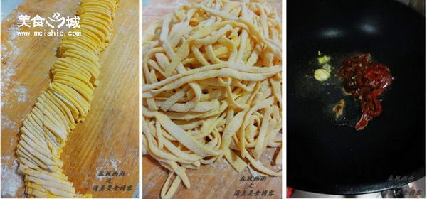 原料:手擀面(此分量可吃两次):南瓜泥120克、面粉400克、盐少许、水200克(根据面粉吸水性增减)