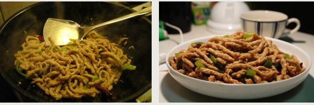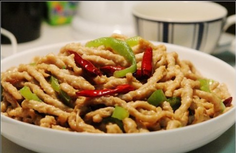 1.肉丝炒的时候要用大火,并且要翻炒均匀,因为面筋丝一多不容易断生。