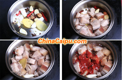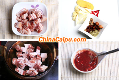材料:腐乳、五花肉、葱、姜、蒜、小红椒、花椒、大料、小茴香、草果