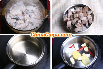 3、锅内做水放入切好块的五花肉