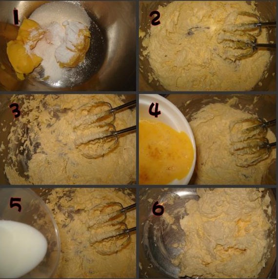 1、糖倒入软化的黄油中;