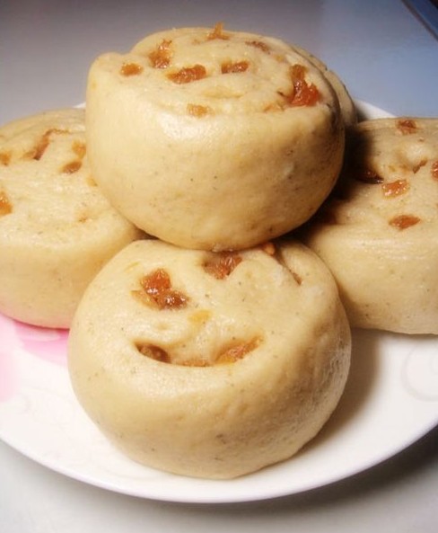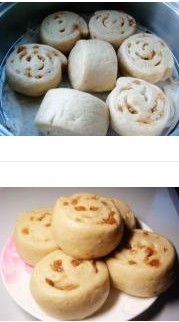 全麦花卷食材明细:特一粉300克 全麦粉150克 小米面150克 酵母9克 黑豆豆浆 300毫升 葡萄干 适量 白糖 30克制作步骤1. 将面粉、全麦粉、小米、酵母混合。 2. 豆浆加温一下。 3. 倒入面粉中和成面团,饧10分钟。 4. 放到面板上揉匀。 5. 擀成长方形薄片。 6. 葡萄干洗净,切碎。 7. 撒上葡萄干。 8. 从内测卷起来。 9. 均匀切开,竖起了整一下。 10. 凉水下锅,大火烧开蒸20分钟。焖3分钟出锅。 11. 稍晾摆盘,即可享用。