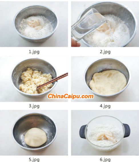 油皮材料:中筋面粉300g、麦芽糖20g、猪油65g、盐少许、沸水170g