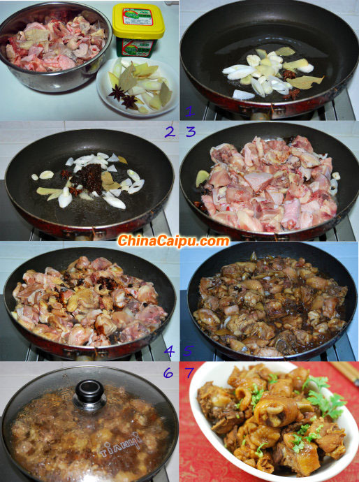 原材料:鸡块儿、六月鲜豆瓣酱、葱姜蒜、香叶、八角、老抽、盐。