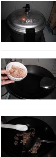 10. 待高压锅里的气没了,即可打开锅盖,调入适量精盐搅匀。(想要快点打开的,可以用一条湿毛巾反复盖在上面)