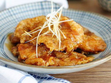 6.待肉片表面金黄,立刻将肉片捞出沥油备用。