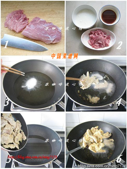 1.里脊肉洗净切成厚约0.2厘米的片。