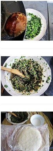 食材明细:春卷皮适量韭菜100克粉丝一把木耳适量盐 适量白糖 3克胡椒粉 2克鸡精 少许香辣粉 5克香油 适量