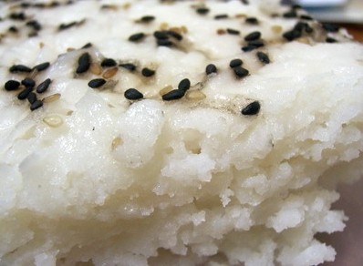 4.面上洒熟芝麻,开水上锅,大火蒸25-30分钟即可.