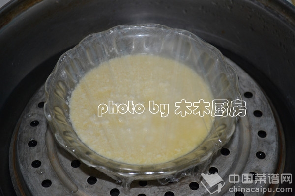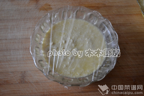 2、蒸10分钟后迅速取出揭掉保鲜膜,防止保鲜膜上的汽水滴入碗里。