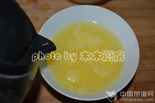 3.打散鸡蛋,加凉水,量是鸡蛋量的2倍左右