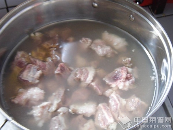 2.水沸腾后在放入牛肉过水焯一下,捞出用温水洗去浮沫