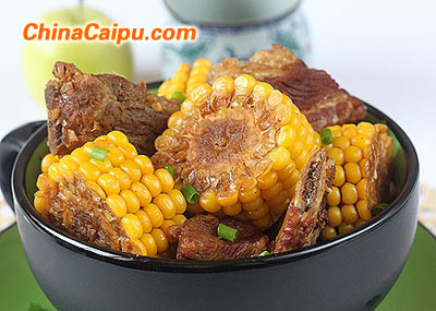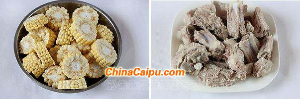 排骨500克、新鲜的玉米穗3个、白糖或冰糖20克、八角2个、花椒10多粒、葱段1小把、生姜4片、盐适量、料酒少许。