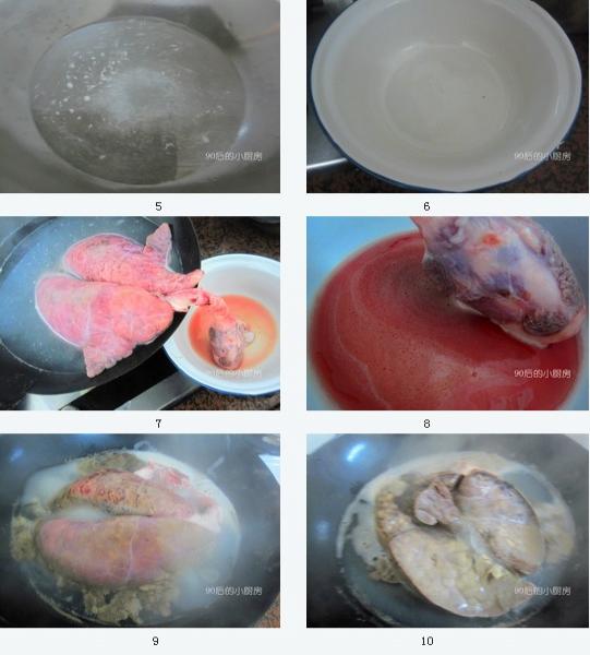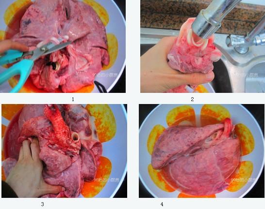 1、第一步拍打和挤压猪肺的过程重复两到三次就可以了,可以不用洗到发白,因为还有后面的两步处理完全可以将猪肺处理干净。