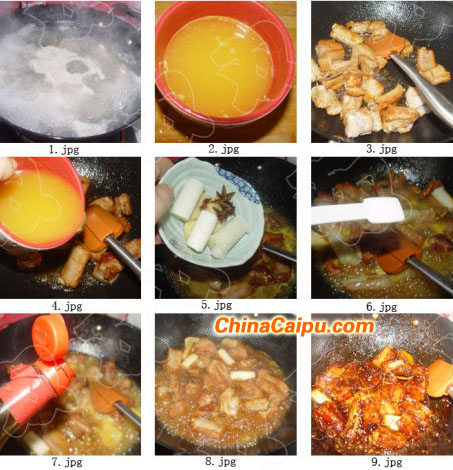 7、为了保持橙汁的原味,只需用糖炒糖色,稍加生抽上色即可。