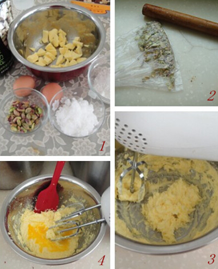 开心杯子蛋糕原料:黄油100克,白糖80克,开心果碎30克,低筯面粉90克,鸡蛋2个。做法:1、准备好所有原料,黄油切小块室温软化,万多福开心果去壳。2、把万多福开心果装保鲜袋里,用擀面杖压成果碎。3、黄油加白糖用打蛋器打至顺滑。4、分次加入鸡蛋液,每加一次打匀后再加下一次。5、加入过筛后的面粉和三分之二的开心果碎。6、切拌成蛋糕糊。7、把蛋糊装入纸杯中,约八分满。8、烤箱预热后,180度烤25分钟左右即可。