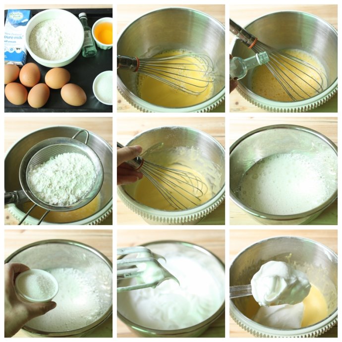a:蛋黄80克,色拉油60克,鲜奶80克,低筋面粉110克,朗姆酒3克,