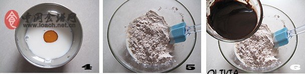 3、取低筋面粉85克、可可粉一勺、泡打粉1/2小勺混合翻匀。