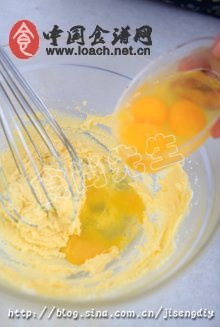 3.将鸡蛋分次加入拌至糖化。