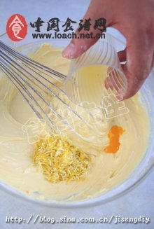 5.依次加入柠檬汁、柠檬皮、柠檬香精。