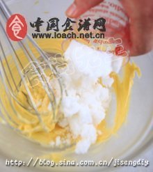 4.将过筛的低筋粉和乳化剂一起加入打发。