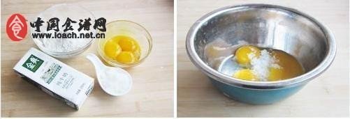 2、用电动打蛋器打发蛋黄,打至全发,呈浓稠发白状态,一定要到非常浓稠