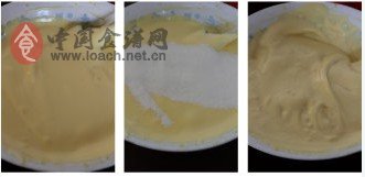 3. 然后慢慢加入加热好的蜂蜜,搅拌至蛋黄糊发白